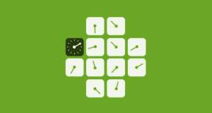 Denn in dem Gratis-Download dreht sich alles um Uhren. Diese sind in den 100 Level des Quest-Modus (außerdem gibt es noch einen Überlebensmodus) in den verschiedensten Formen und Größen auf dem Display angeordnet. Die gerade aktive Uhr ist schwarz gekennzeichnet, alle anderen weiß.