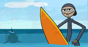 Nach dem kostenlosen Download auf iPhone und iPad stürzt ihr euch mit einem Strichmännchen auf einem Surfbrett in die Wellen – oder genau gesagt eine endlose Welle. Durch geschickte Manöver gilt es, diese so lange wie möglich zu reiten, ohne mit den Hindernissen zu kollidieren. Und von denen gibt es zahlreiche, z.B. Steine und euch entgegenkommende Vögel. Auch Haie, der Alptraum aller Surfer, machen Jagd auf euch.